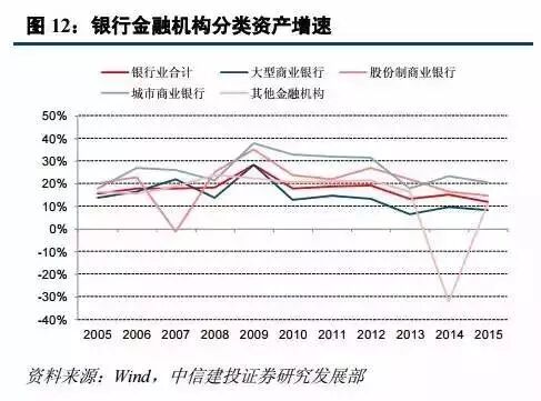 截至 2015 年 6 月,我国国内银行金融机构总资产达到 171.6 万亿,其中城商行和农村金融机构资产占比达到 24%,近 10 年增速始终高于行业平均和其他类别。城商行和农商行市场份额的提升主要是由于市场准入放松后的网点扩张,然而从业务上来说,各家经营特色并不明显,目标市场重叠度高。
