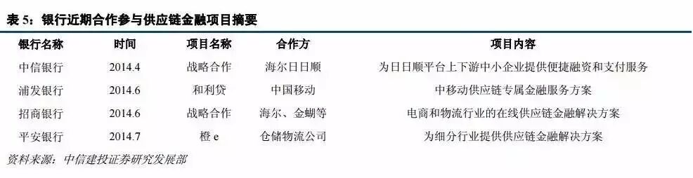 我们认为在此时间点关注供应链金融出于以下几个原因: 1、经济增速放缓,产能全面过剩,行业风险过大,上下游企业账期过长,赊欠严重;2、银行利率市场化,竞争日渐激烈,服务中小型企业的需求增加;3、互联网对于供应链金融的影响;4、传统企业转型动力强,金融业务的开拓;6、融资租赁、保理、P2P 等金融业态崛起为供应链金融提供新的资金来源。