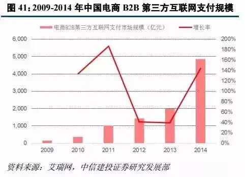 而从交易平台的目标客户,也就是中小企业的角度来讲,在线交易平台更透明的比价条件、更安全的资金周转也是吸引他们的关键因素。这与我国第三方互联网支付规模的逐年攀升相吻合。