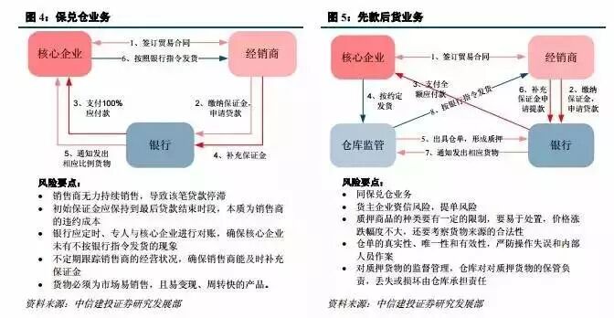 一是,银行给渠道商融资,预付采购款项给核心企业,核心企业发货给银行指定的仓储监管企业,然后仓储监管企业按照银行指令逐步放货给借款的渠道商,此即为所谓的未来货权融资或者先款后货融资;二是,核心企业不再发货给银行指定的物流监管企业,而是本身承担了监管职能,按照银行指令逐步放货给借款的渠道商,此即所谓的保兑仓业务模式。